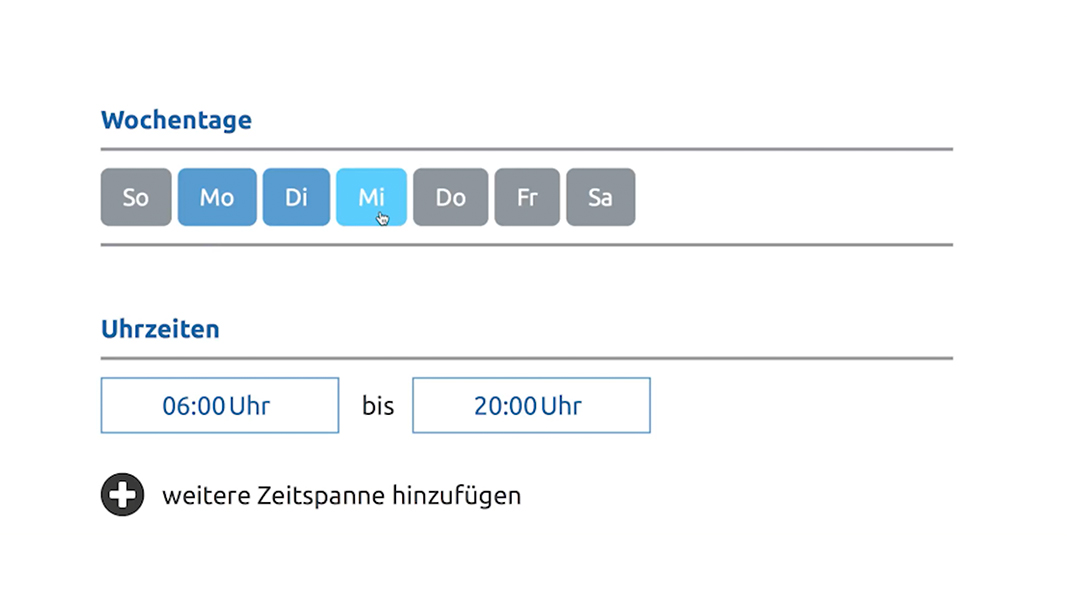 Variieren Sie Ihre Werbebotschaften passend zu verschiedenen Wochentagen und Tageszeiten. Ihre Werbeaktionen können somit flexibel an zeitliche Gegebenheiten angepasst und ausgespielt werden.